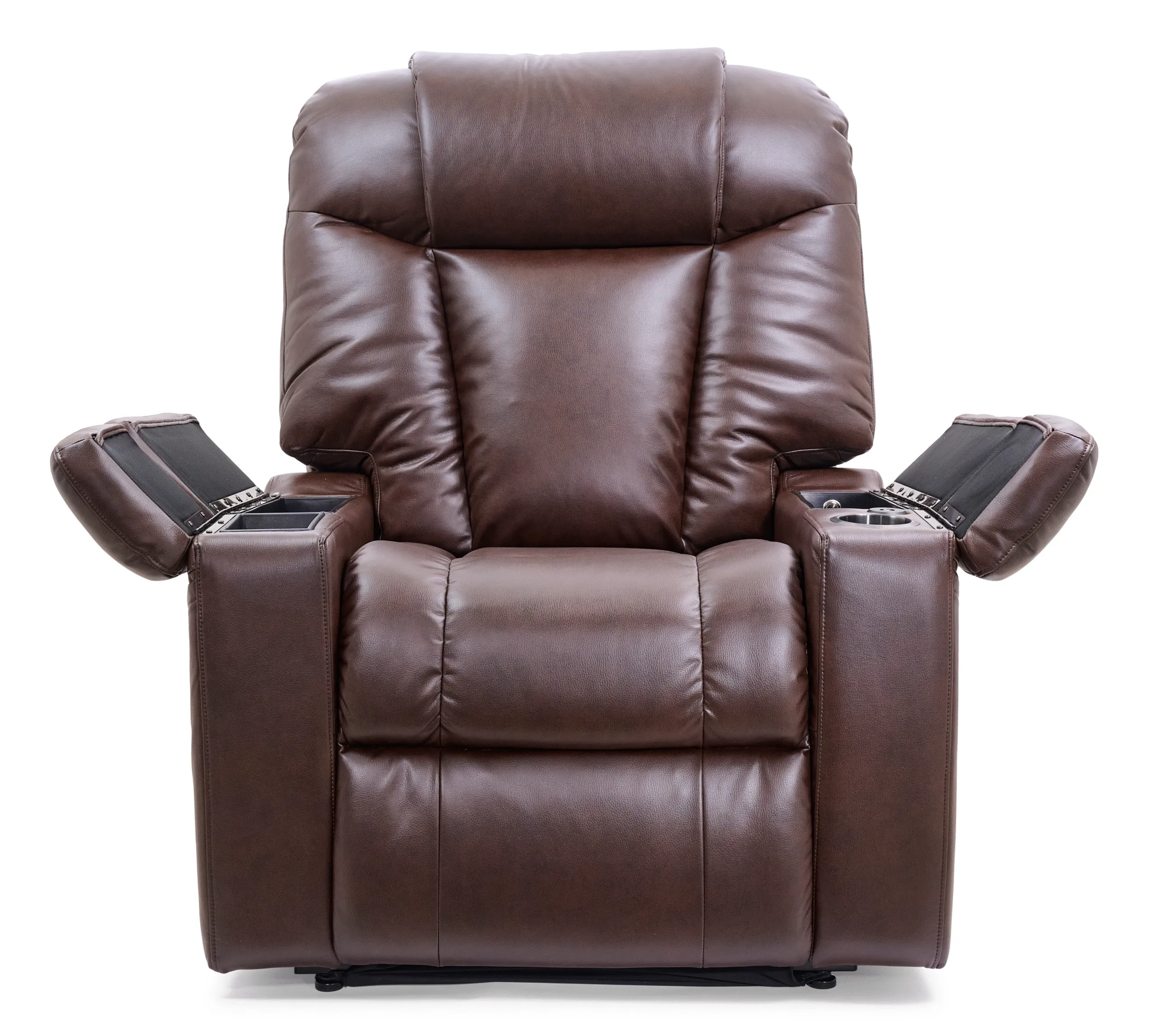 With its plush chaise pad, overstuffed backrest, and smart design, the Rhea creates a vacation-like escape right at home. Both armrests open to reveal convenient features—two cup holders, two storage compartments, a USB charging port, and a dedicated spot for the control remotes.
